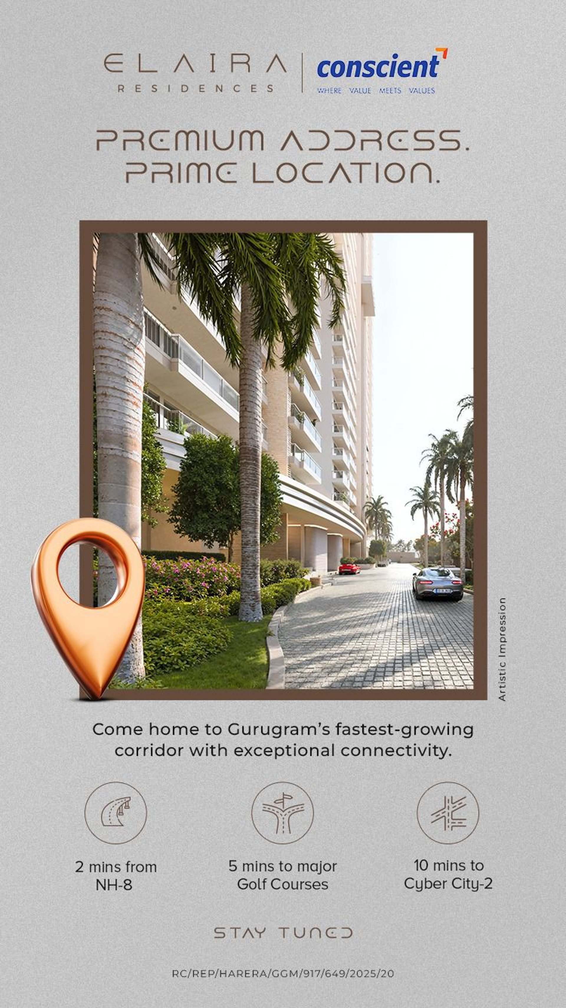 ELAIRA Residences brings luxury, nature, and world-class design together. Located near Aravalli Views, surrounded by golf courses, greenery and premium development zones.